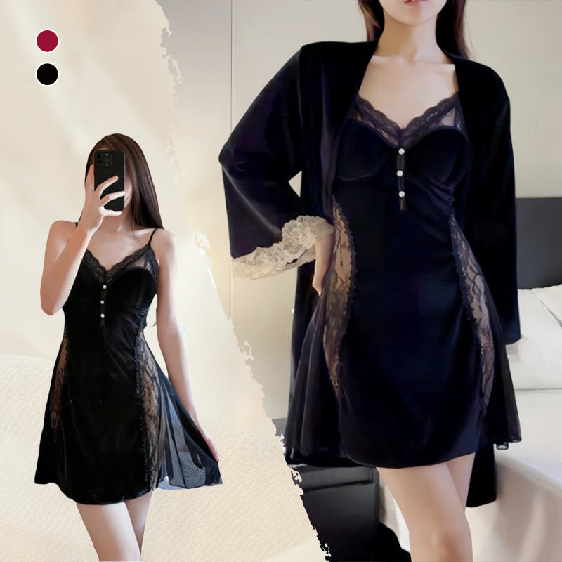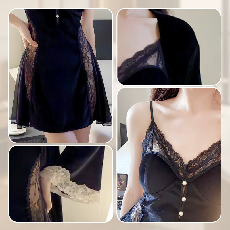 ELEGANT BLONDEKANT - Denne nattkjolen er designet med delikate blonder, noe som gir et snev av raffinement og forførelse til nattskapet ditt.