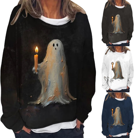 Genser med spøkelsesmaleri og stearinlystrykk