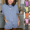 Pakken inkluderer: 1 * Kortermet ribbestrikket topp og shortsett for kvinner
